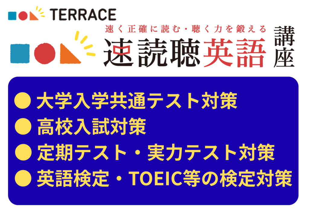 TERRACEは、英語を「読む」「聞く」力を総合的に高めながら、入試や各種検定にもつながる力を育てる講座です。