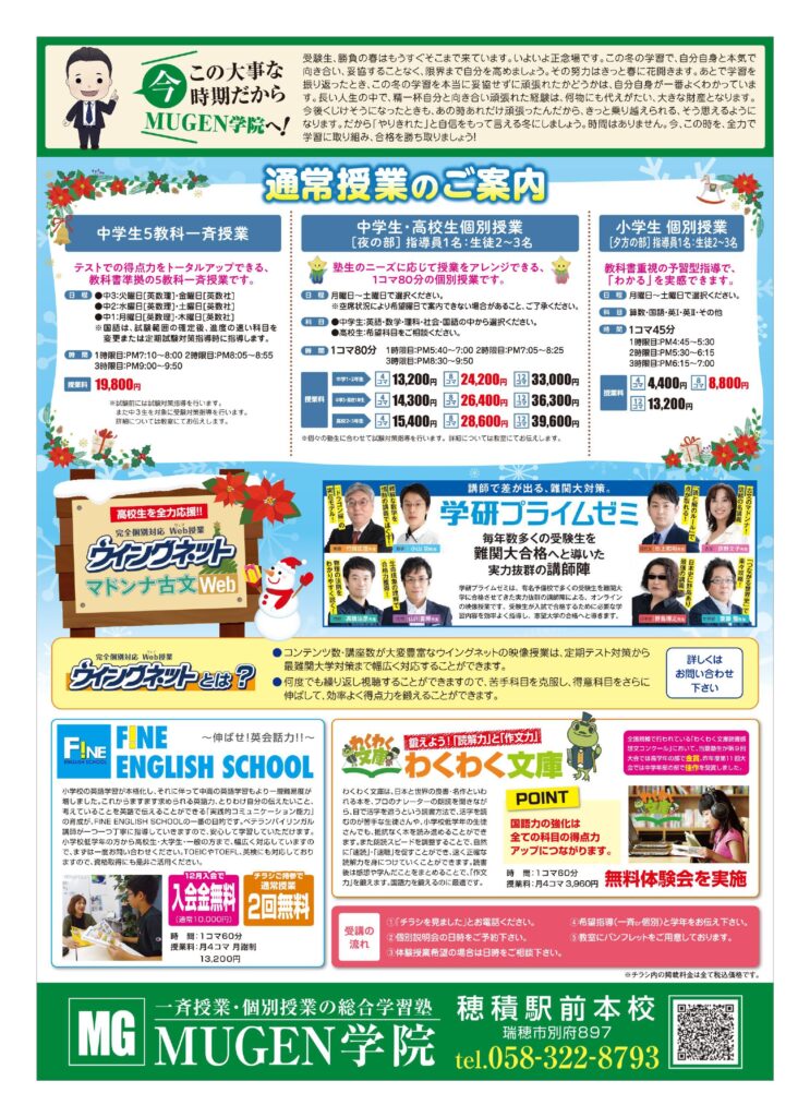 ■ MUGEN学院の 冬期講習 【 瑞穂市の学習塾 MUGEN学院 穂積駅前本校 】