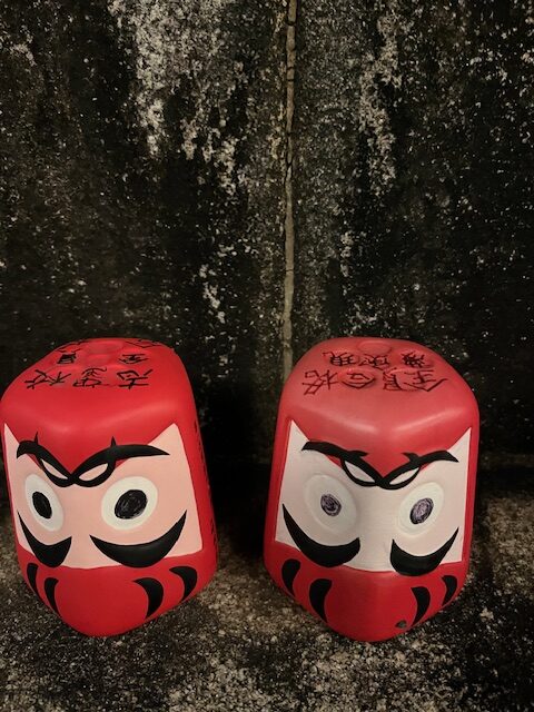 PS 昨年合格祈願をしただるまさんをお返ししたのですが、いつもの灯篭に置こうとすると見覚えのあるだるまさんが。それは以前私が返納しただるまさんで、思わず2ショット写真を撮ってしまいました!