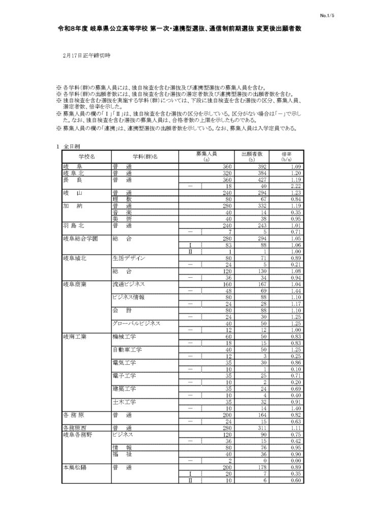 ■ 岐阜県公立一次 出願者数(確定版)【 瑞穂市の学習塾 MUGEN学院 穂積駅前本校 】