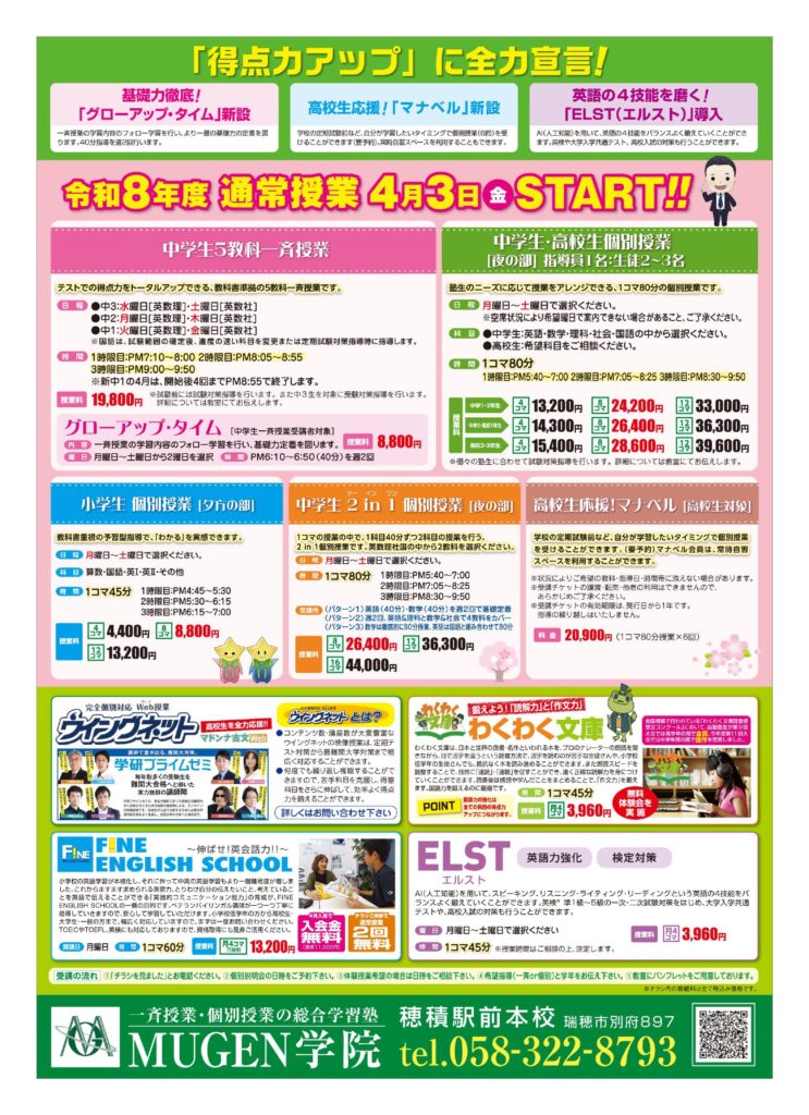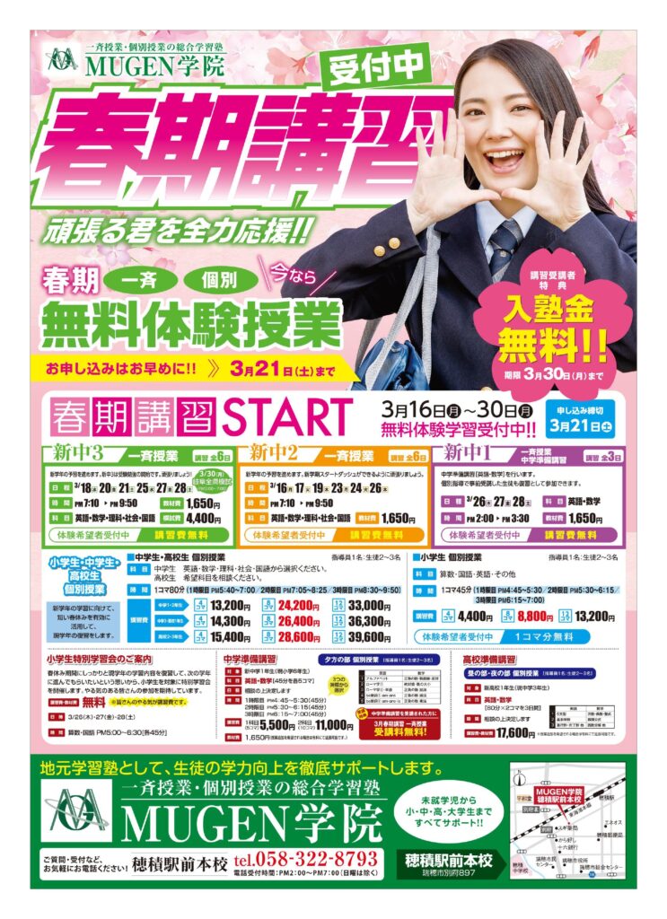 ■ MUGENの 春期講習 【 瑞穂市の学習塾 MUGEN学院 穂積駅前本校 】